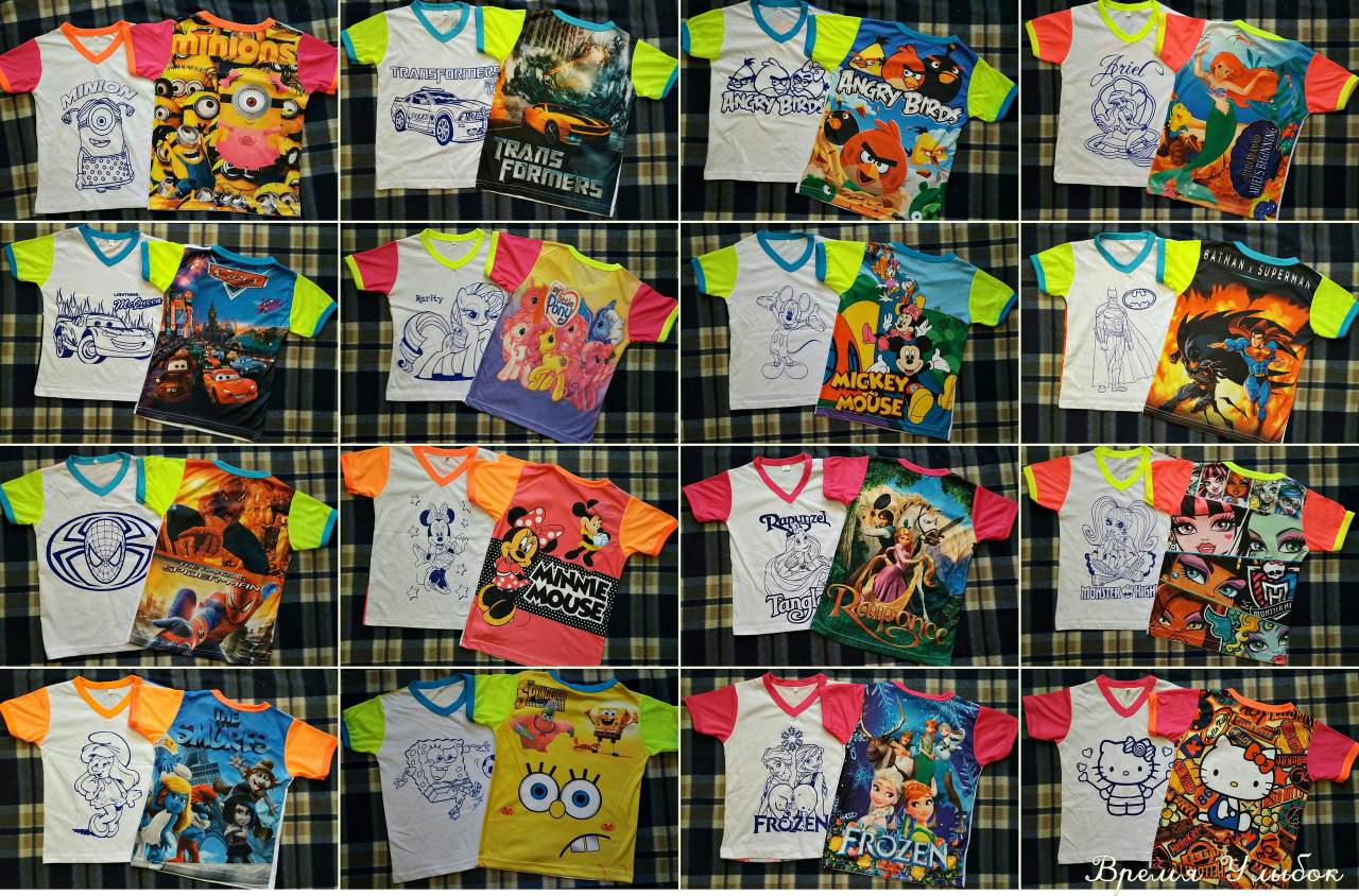 Будьте першими! Замовте на свято для своєї дитини та її гостей незабутні емоції, враження та творчий подарунок. Кожна дитина зможе сама обрати собі малюнок футболки, розмалювати її спеціальними фарбами і з гордістю потім носити свій витвір мистецтва. Футболки розміром від 90 см до 150 см. Футболки можна прати). Малюнок залишиться надовго).